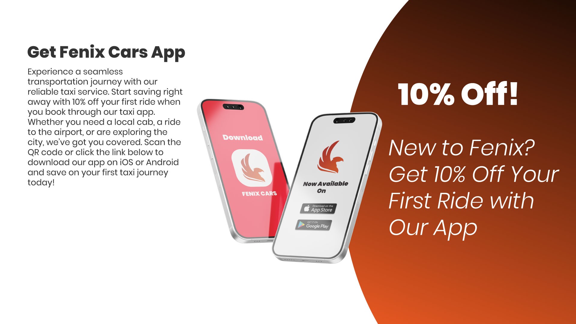 At Fenix Cars, we believe premium service shouldn’t come at a premium price. We provide reliable, transparent, and affordable taxi services for airport transfers, business trips, and local rides, prioritizing your comfort, safety, and convenience. Our competitive rates guarantee outstanding value, free from hidden fees or surprises. With a firm commitment to excellence, every journey is smooth, punctual, and personalized. Choose Fenix Cars for professional travel that is as reliable as it is refined.